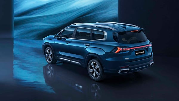 Geely Okavango привлекает внимание массивной решеткой радиатора с вертикальными хромированными ламелями, напоминающими водопад, скульптурными линиями кузова, большими колесными арками и 19-дюймовыми легкосплавными дисками.